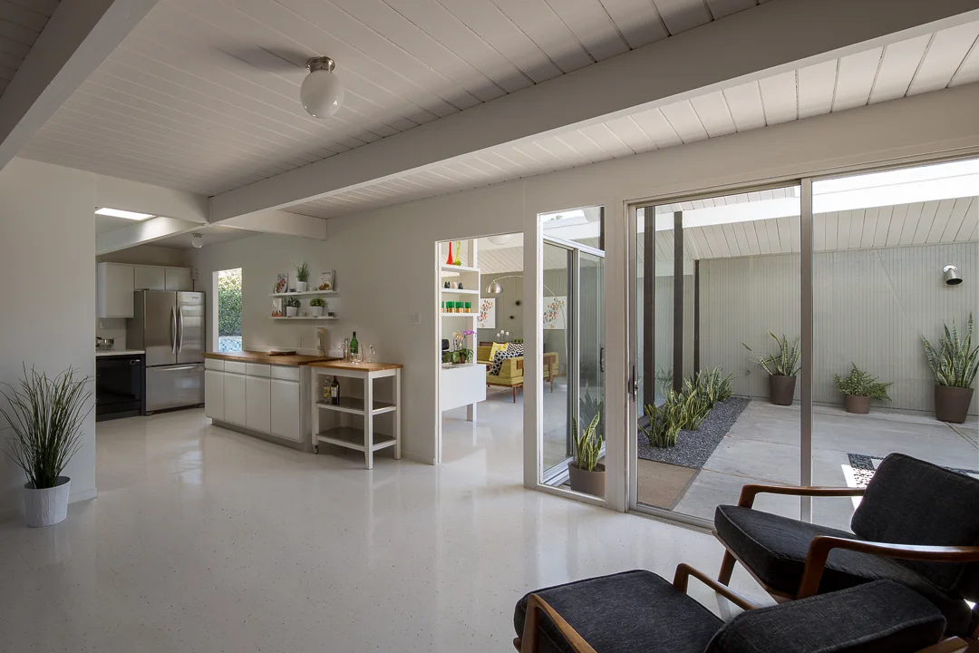 We recently had the wonderful opportunity to stage a newly and exquisitely restored Eichler home in Orange County, California. We worked closely with Mid-Mod Mogul, Kelly Laule of Eichler SoCal, who is responsible for updating and selling the home. The layout of the house is phenomenal with floor-to-ceiling glass walls running most of the span of the vaulted atrium. 4 bedrooms flank the left and right wings of the home. The home is currently entertaining an offer, but is still accepting backup offers. Call Kelly quick!